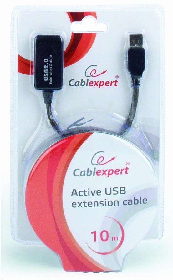 GEMBIRD USB 2.0 aktivní prodlužka, 10m, černá