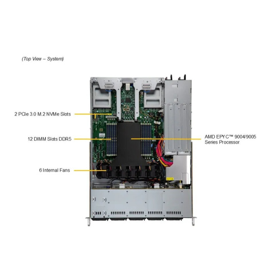 | Procesory | Dual AMD EPYC™ 9004/9005* Series Processors (*Podpora AMD EPYC™ 9005 vyžaduje revizi desky 2.x) |