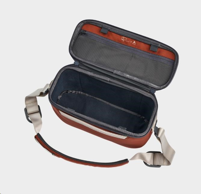 Odolný kovový rám zajišťuje, že si brašna zachová svůj tvar, a vnitřek z materiálu Nylex pevně drží rozdělovací suchý zip. Inovativní přepážky ve tvaru harmoniky, některé s přidanou policí, dále maximalizují prostor. Tento závěs je kombinací funkčnosti a řemeslného zpracování na míru fotografům.