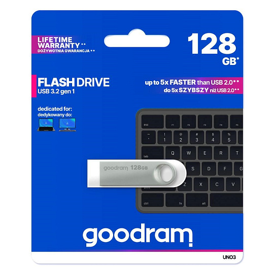 GOODRAM Flash Disk UNO3 128GB, USB 3.2 Gen1, stříbrná