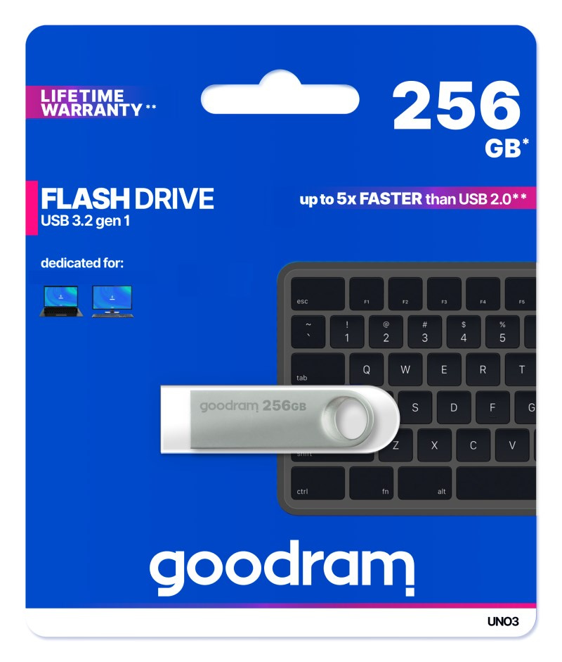 GOODRAM Flash Disk UNO3 256GB, USB 3.2 Gen1, stříbrná