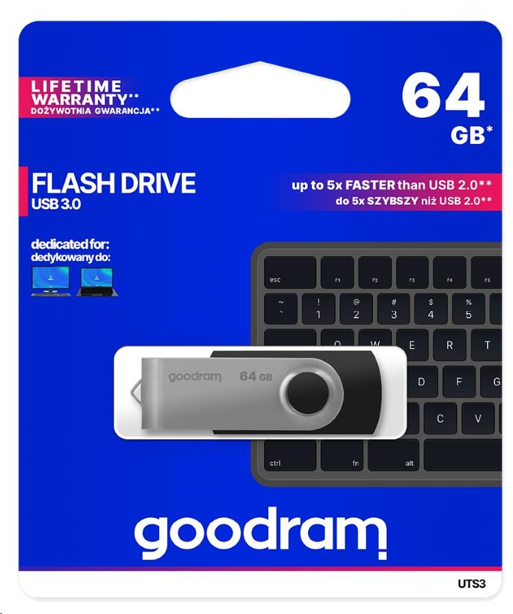 GOODRAM Flash Disk 64GB UTS3, USB 3.0, černá