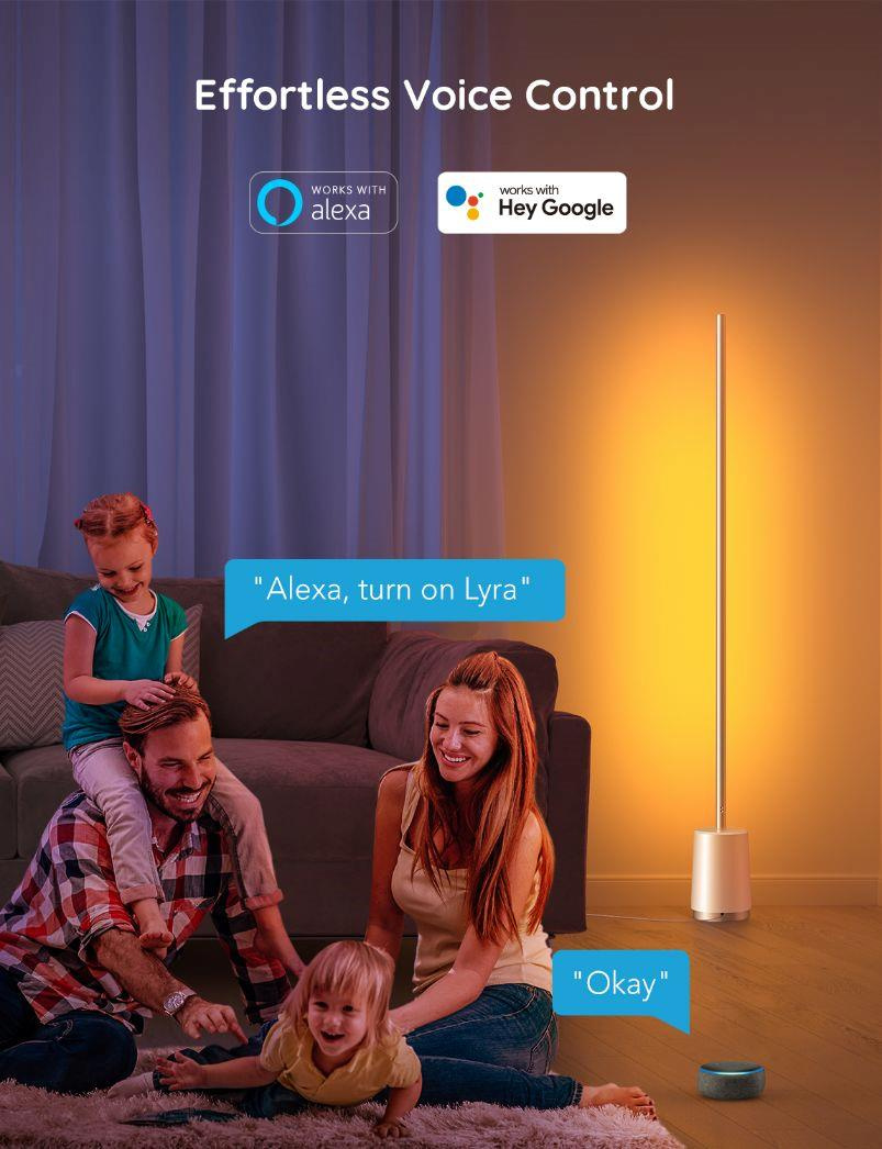 Govee Lyra je minimalistická podlahová lampa, navržená, aby perfektně zapadla do jakéhokoliv interiéru. Jednoduše se hodí všude, protože je ve zhasnutém stavu velmi nenápadná. Vše se změní po aktivaci, kdy se probere jejích 1500 lumenů. Díky diodám s technologií 4 v 1 RGBICWW dosahuje světlo ohromující intenzity. K dispozici je přes 16 milionů barev nebo bílá laditelná od 2200 do 6500 K. Lampa měří téměř 1,5 metru, ale zabírá minimální prostor a lze ji tak umístit doslova kamkoliv. Nejvíce jí to však sluší v rohu, kdy osvítí maximální prostor za sebou a vykouzlí na vaše zdi úžasně plynulé barevné přechody. Životnost lampy je u Govee standardních 50.000 hodin. Ovládání je možné aplikací Govee Home, Google Home, pomocí asistentů Google, Apple i Amazon. Pro maximální pohodlí v balení naleznete i klasický dálkový ovladač, který je kdykoliv v pohotovosti, připnutý přímo k lampě. Samozřejmostí jsou přednastavené scény, kterých je zde 64, několik režimů synchronizace s hudbou a pokud si ani tak nevyberete, čeká na vás DIY režim, který vám dá 100% kontrolu při které je jediný limit vaše fantazie.