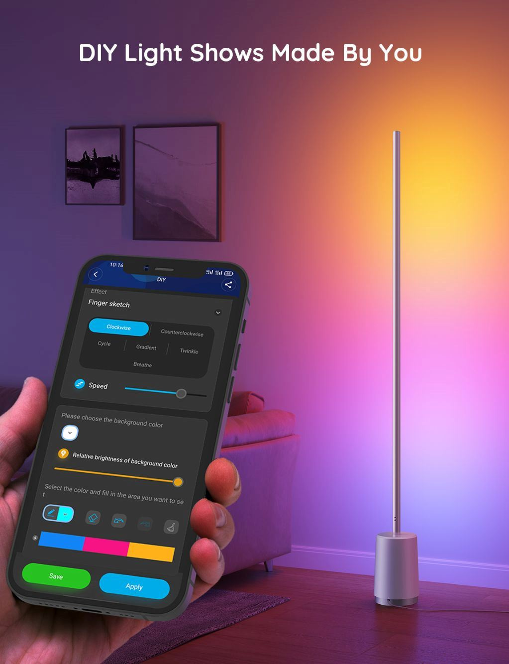 64 světelných scén a možnosti vizualizace hudby díky vestavěnému mikrofonu. Užijte si svátky, čas s rodinou a přáteli a překvapte je. Díky schopnostem aplikace můžete navíc další scény sami navrhovat. Chcete vytvořit působivý efekt? Není problém, aplikace vás přesně navede. Své výtvory můžete navíc sdílet v Govee komunitě.