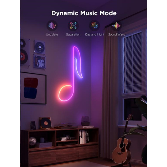 Instalace je velice jednoduchá pomocí samolepících klipů s 3M páskami. Nová generace neonových pásku je ještě ohebnější a tvarování je tak snazší. Vylepšeny byly i klipy a nabízí teď pevnější fixaci vymyšleného tvaru. Pro možnost maximální jistoty jsou v balení i šroubky. Govee Neon 2 je vhodné pro všechny místnosti a fantazii se meze nekladou!