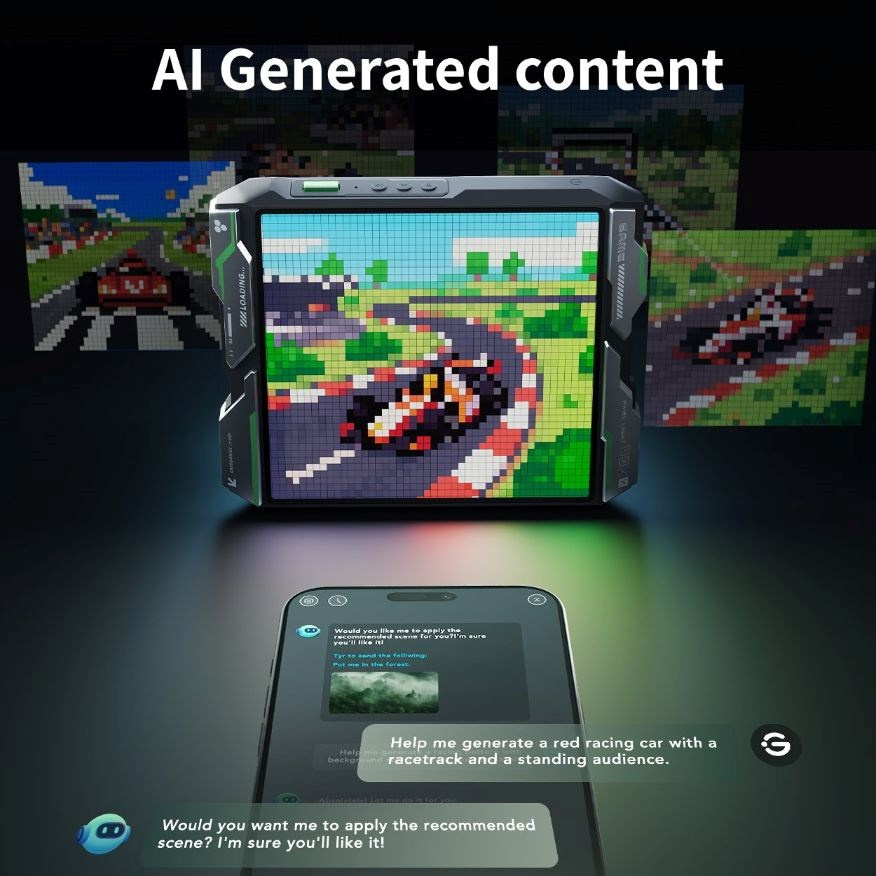 Objevte novou úroveň kreativity s pixelovým panelem Govee, který využívá umělou inteligenci. Stačí zadat svůj nápad – například závodní auto na okruhu nebo pulzující světelné efekty – a panel je okamžitě přemění na živé pixelové animace. Díky chytrým doporučením scén a snadnému ovládání v aplikaci vytvoříte jedinečnou atmosféru!