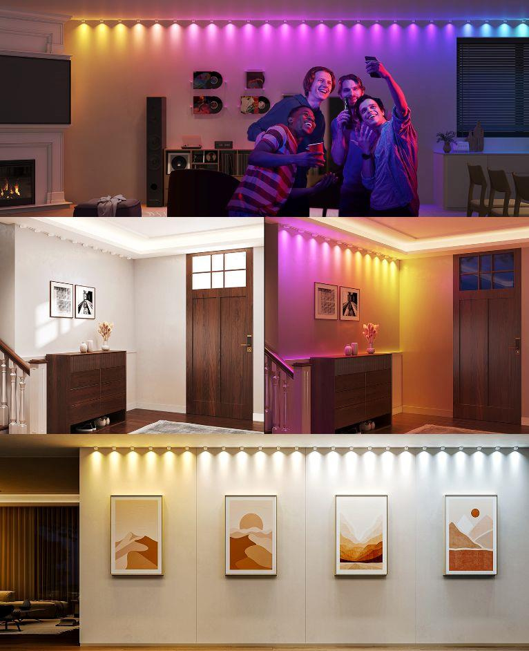 Stropní světla Govee String Downlights ve vašem domově vytvoří dokonalou atmosféru. Řetěz 25 nezávisle programovatelných LED světel, rozložených na délku 5 metrů vytvoří z nudné stěny umělecké dílo velkoplošné RGB projekce. Díky technologii RGBIC je možné každý reflektor ovládat nezávisle, vybírat RGB odstín, teplotu bílé barvy a jas. String downlight je plně ovladatelné aplikací Govee, funguje s asistenty Goodle nebo Alexou a samozřejmostí je i vzdálené ovládání nebo pohodlný časovač. Řetěz stropních světel Govee dokáže vizualizovat hudbu, disponuje 64 presety včetně sezónních a svátečních a nabízí mocný DIY režim, ve kterém nic není nemožné. Instalace řetězu je jednoduchá a v balení naleznete vše potřebné. Světla lze vést i po oblých zdech a není problém umístit i přes roh místnosti. Pro vzhledné umístění je možné řetěz i libovolně zkrátit.