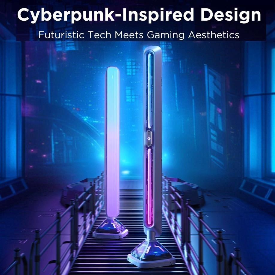 Design světelných panelů je inspirovaný světem cyberpunku, kde futuristická technologie dokonale splývá s herní estetikou. Moderní design, moderní linie, neonové barvy a dynamické osvětlení vytvářejí vizuálně působivý vzhled, který promění každý herní nebo multimediální prostor v ultramoderní prostředí.