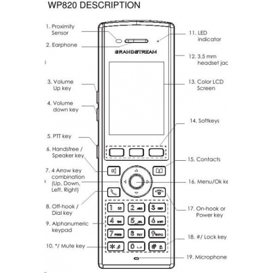 Grandstream WP820 [Wi-Fi IP telefon, 2 linky, 2 SIP účty, 2.4" TFT 240x320, bluetooth, 3.5mm jack, OS Android]