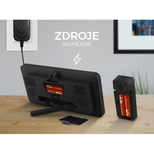 Meteostanici lze napájet z vhodného AC adaptéru 5 V (není součástí balení). V případě výpadku elektrického proudu meteostanici udrží v chodu i 2 baterie (AAA). Bezdrátový senzor je také napájen dvěma 1,5V bateriemi (AAA)