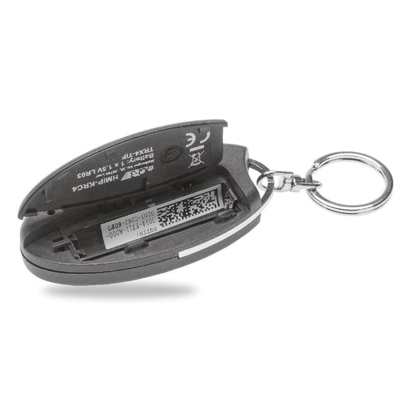 Elegantní bezdrátová klíčenka (HmIP-KRCA), umožňující jednoduché ovládání zabezpečovací části systému stisknutím tlačítka, je součástí systému chytré domácnosti Homematic IP a alternativou k aplikaci Homematic IP.
