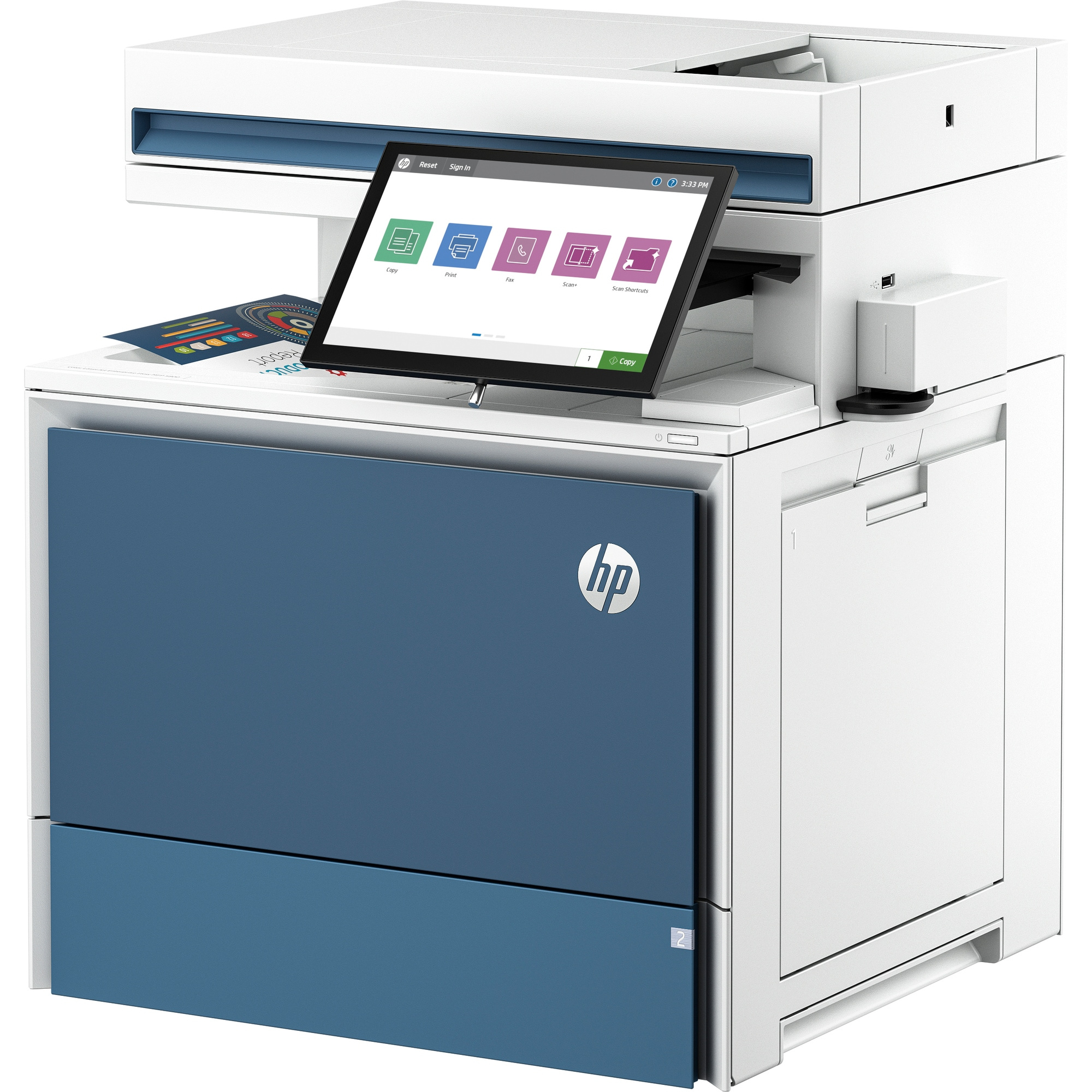 | Standardní možnost připojení | 1 port faxu; 1 síťový port Gigabit Ethernet 10/100/1000T; 1 rozhraní pro integraci hardwaru 2. generace (HIP2); 1 port USB Hi-Speed 2.0 (hostitel); 1 port USB SuperSpeed 3.0 (zařízení); 1 port USB SuperSpeed 3.0 (hostitel) |