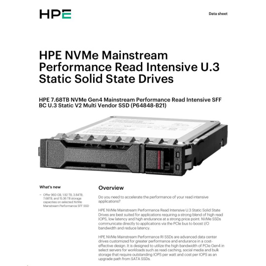 HPE 7.68TB NVMe Gen4 Mainstream Performance Read Intensive SFF BC U.3 Static V2 Multi Vendor SSD.
