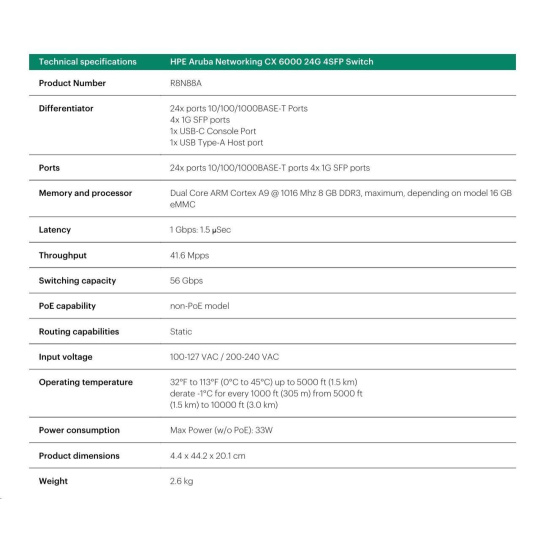 HPE Aruba Networking 6000 Switch Specifications