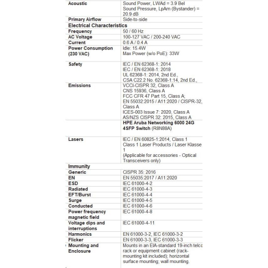 HPE Aruba Networking CX 6000 8p 10M/100M/1G Class4 PoE 2p SFP 1G 67W Switch
