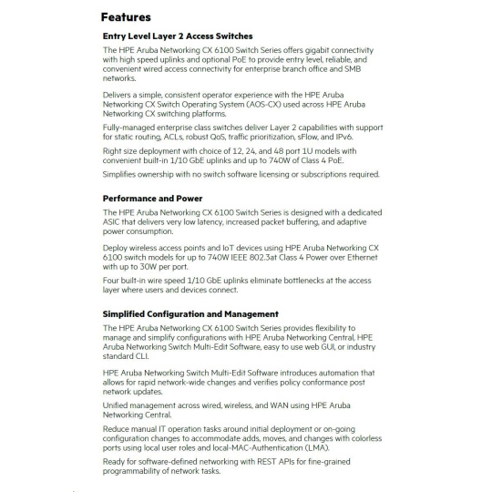HPE Aruba Networking CX6100 48G 4SFP+ Switch