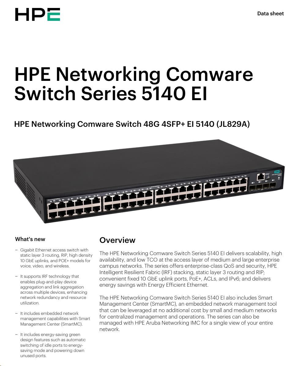 | HPE Networking Comware Switch 48G 4SFP+ EI 5140 | JL829A | |