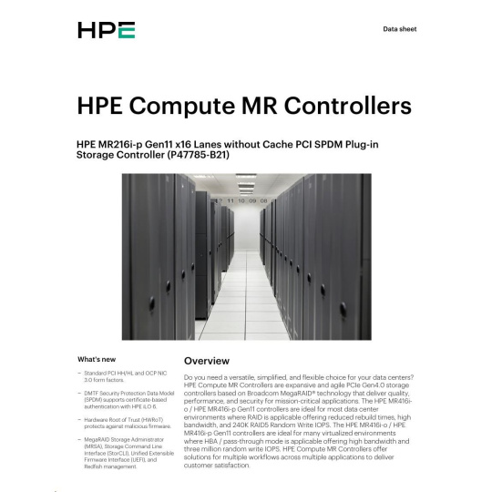 HPE MR216i-p Gen11 16 Internal Lanes/No Cache SPDM PCI Plug-in Storage Controller (raid 0,1,10 only)