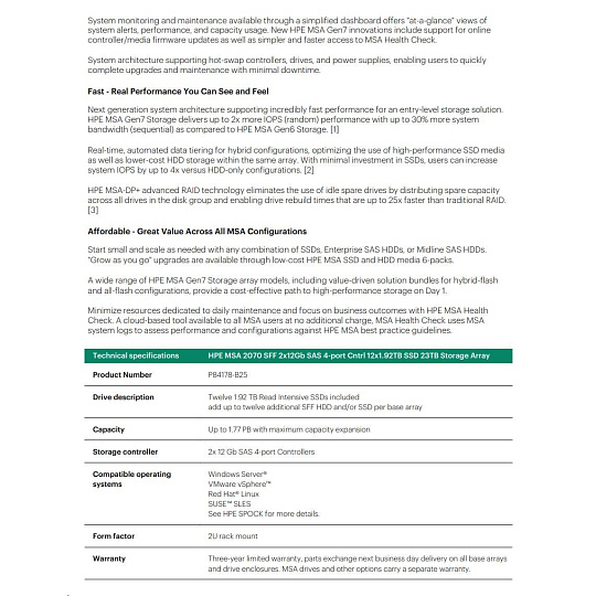 HPE MSA 2070 SFF 2x12Gb SAS 4p Array.