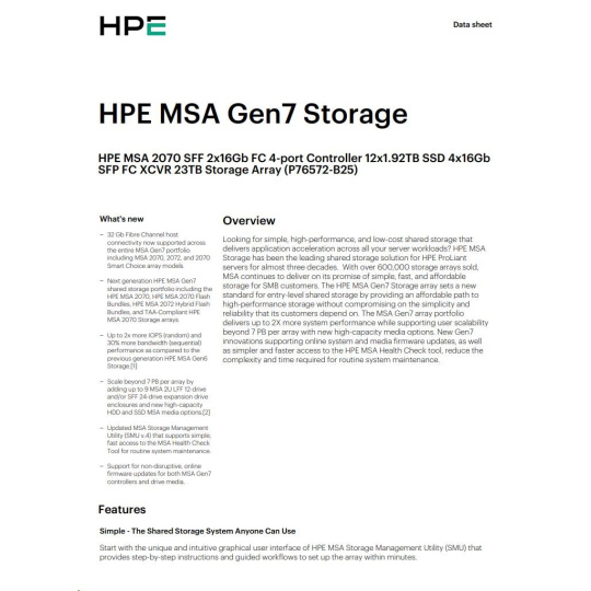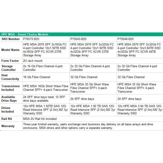 HPE MSA 2070 SFF 23TB (12x1.92TB R0Q47A, 2x16G FC4pController, 4x16Gb SFP-SFP-FCXCVR C8R24B) Smart Choice.
