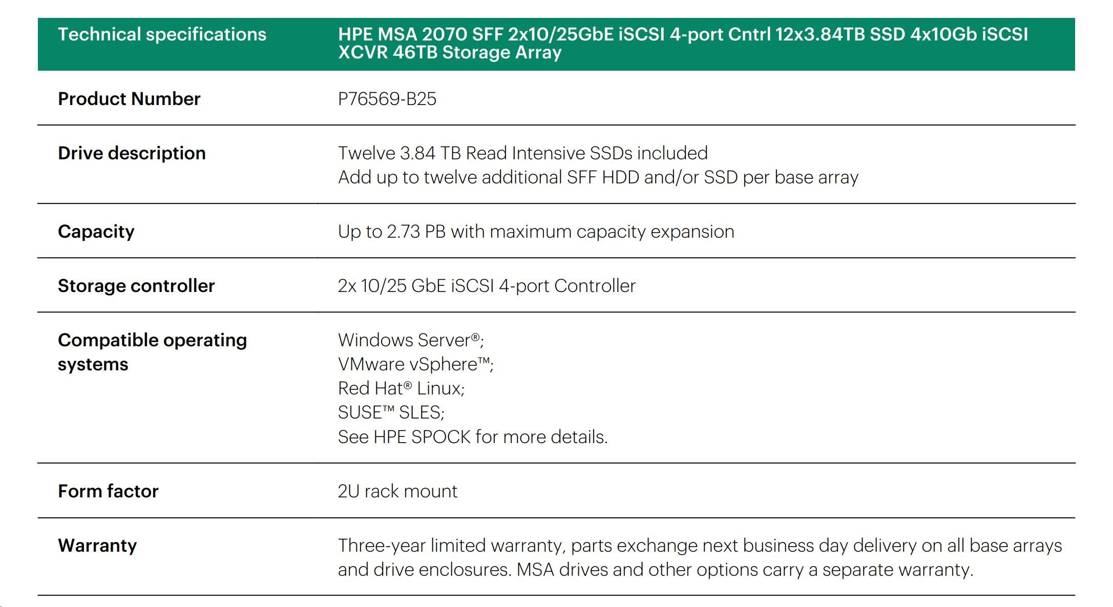 HPE MSA 2070 SFF 2x16Gb FC 4p Array.