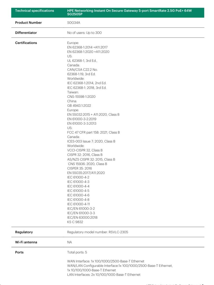 HPE Networking Instant On Secure Gateway SG1004(S0G33A) | HPE Networking Instant On Secure Gateway SG2505P(S0G34A) |