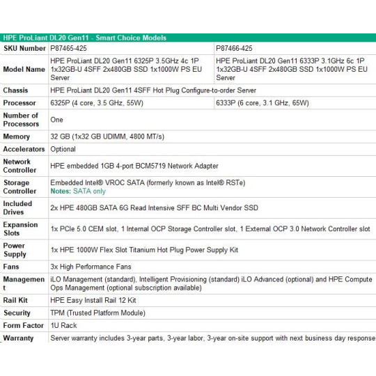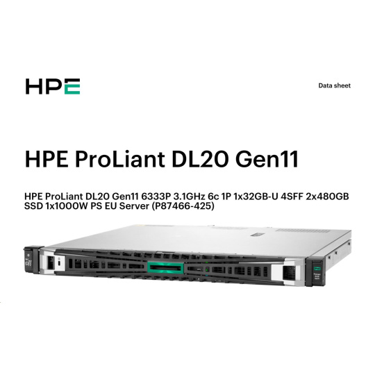 HPE PL DL20 gen11 6333P (3.1G/6C12T) 1x32G 4SFF 2x480GB VROC 1x1000W 4x1G NBD333 Smart Choice.