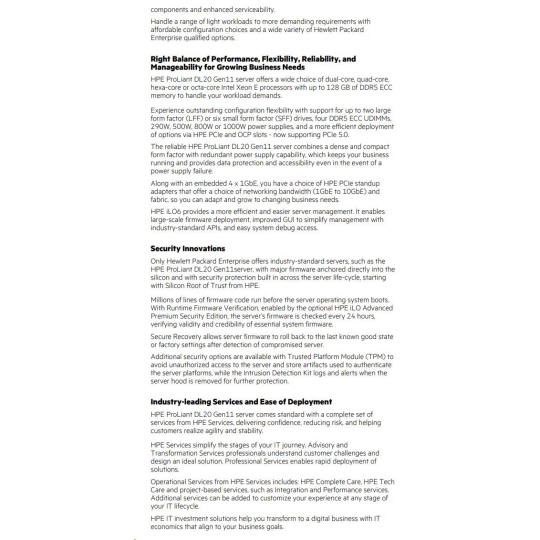 HPE PL DL20g11 6325P (3.5G/4C8T) 1x32G 2x2TB/7.2k SATA VROC 2LFF-HP 4p1Gb 290W Smart Choice