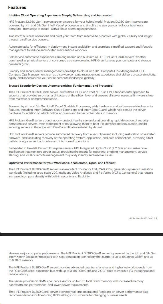 HPE PL DL360g11 5515+ (3.2G/8C) 2x32G (P64706) 8SFF MR408i-o/4G 2x480G 2x1000W 2x10G-T.