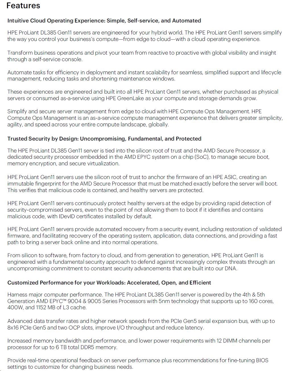 HPE PL DL385g11 AMD EPYC 9115 (2.6/16C) 2x32G (P64985) 1x7.68TB NVMe 2x1000W 8SFF 2p10GT Smart Choice