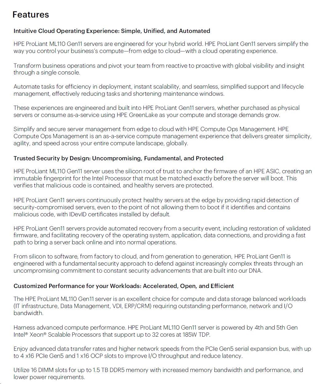 | Chassis | HPE ProLiant ML110 Gen11 SFF Configure-to-order Server |