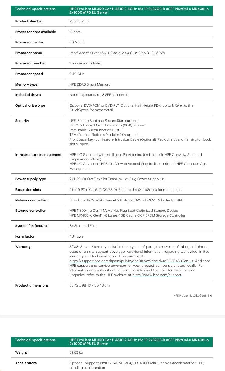 HPE PL ML350g11 4510 (2.4G/12C) 2x32G (P64706) NS204(2x480) MR408i-o 2x1000W 8SFF 4p1Gb Smart Choice.