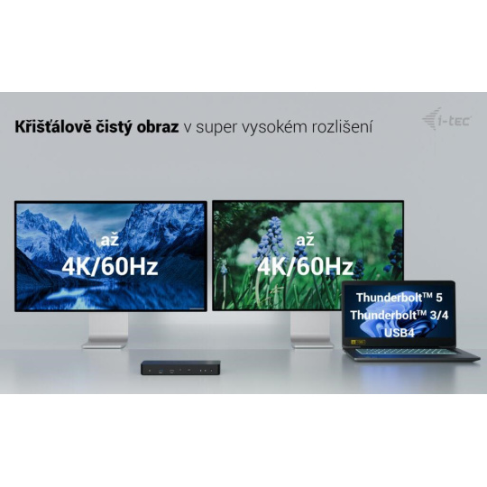 Nová generace vysokovýkonné dokovací stanice Thunderbolt“ 4 umožňuje připojit až dva externí monitory v rozlišení 4K nebo jeden displej v rozlišení 8K. Je kompatibilní s prakticky všemi notebooky vybavenými porty USB-C**, USB4 nebo Thunderbolt“ 3/4/5 a podporuje všechny hlavní operační systémy.