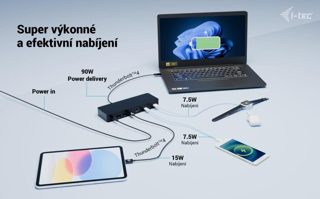 i-tec Thunderbolt 4 Intelligent Dual Display Docking Station, Power Delivery 90W