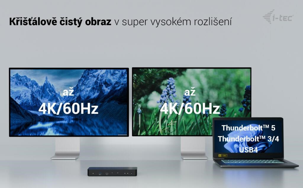 Nová generace vysokovýkonné dokovací stanice Thunderbolt“ 4 umožňuje připojit až dva externí monitory v rozlišení 4K nebo jeden displej v rozlišení 8K. Je kompatibilní s prakticky všemi notebooky vybavenými porty USB-C**, USB4 nebo Thunderbolt“ 3/4/5 a podporuje všechny hlavní operační systémy.