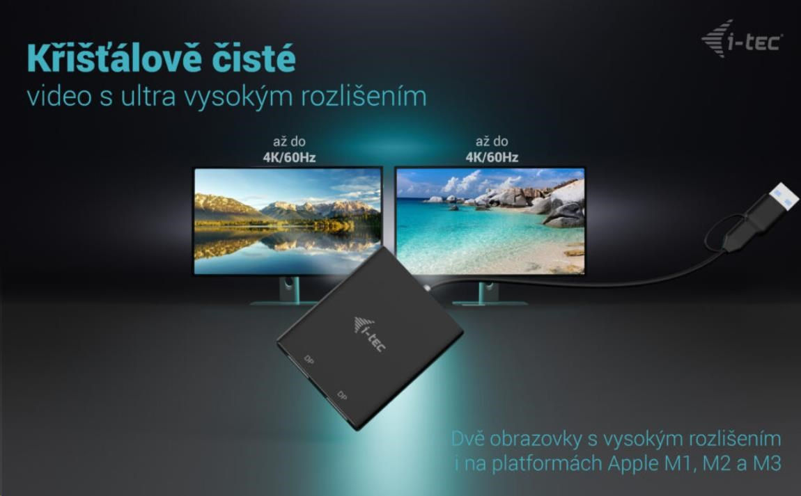 Rozšiřte svou pracovní plochu o dva externí monitory DisplayPort. Adaptér podporuje 2x rozlišení 4K 4096×2160@60Hz včetně zvukového signálu.