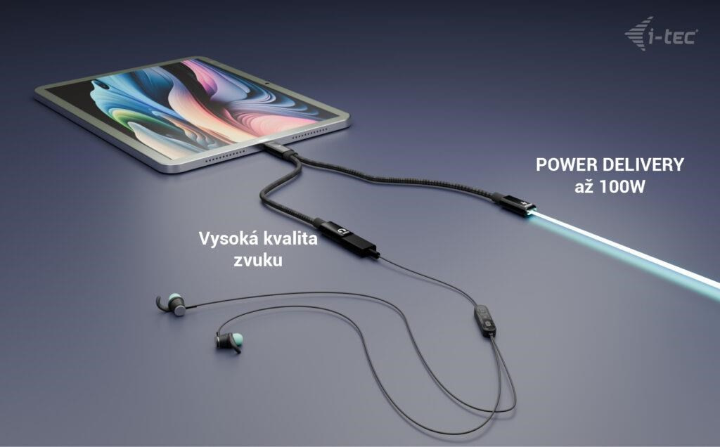 i-tec USB-C Cable Splitter Audio/Data + Power Delivery 100W