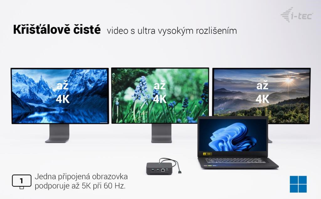 Vysoce výkonná kancelářská dokovací stanice USB-C s podporou až 3 externích monitorů s rozlišením 4K. Stanice je kompatibilní s jakýmkoli notebookem vybaveným portem USB-C, USB4 nebo Thunderbolt 3/4/5. Samozřejmostí je také možnost nabíjení notebooku či tabletu výkonem až 100 W.