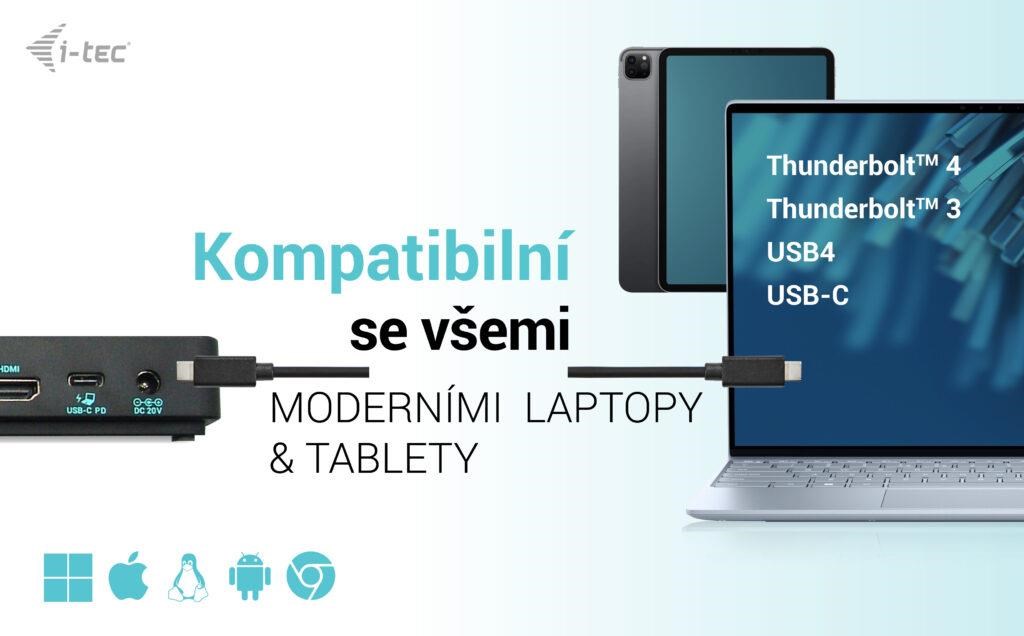 • Dokovací stanice je kompatibilní se všemi moderními notebooky vybavenými porty USB-C, USB4 nebo Thunderbolt™ 3/4.
