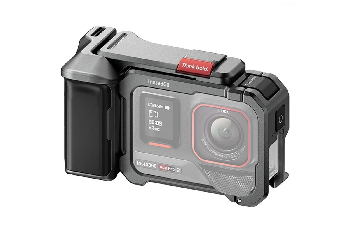 Xplorer Grip Kit od Tilta je ergonomický grip pro Insta360 Ace Pro 2 a Ace Pro. Zajišťuje pohodlnější držení a stabilnější záběry. Obsahuje kovový rám s montážními body (1/4", cold shoe, rychloupínací) pro připojení příslušenství. Součástí balení je grip, rám, spoušť, dekorativní kryt a poutko..