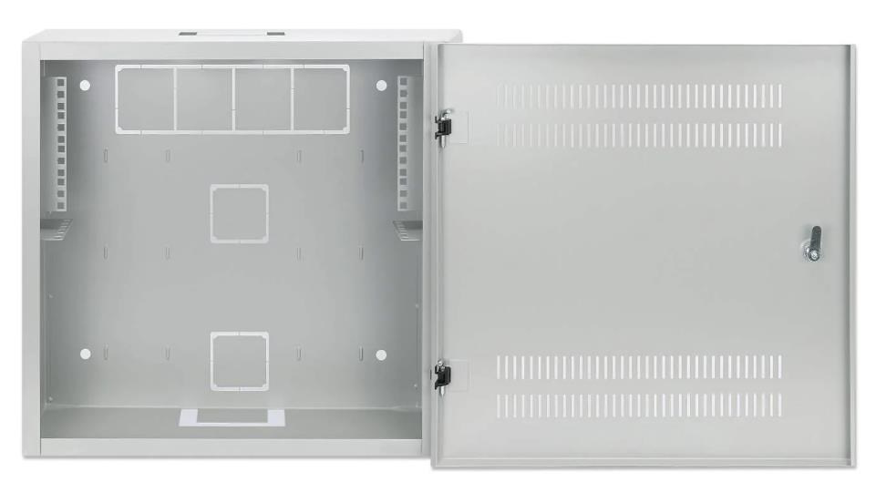 Low-Profile 19" Wall Mount Cabinet with 4U Horizontal and 2U Vertical Rails Slim, Space-saving Enclosure with Only 170 mm (6.7 in.) Depth, Ideal for AV, Multimedia and Surveillance Applications, Assembled, Gray RAL 7035 SKU: 713641 Highlights Slim, space-saving design for organized, secure housing of network, multimedia, surveillance, audio/video and smart home equipment Horizontal 4U 19" rackmount option for PDUs, patch panels and other equipment with a depth up to 170 mm (6.7 in.) Vertical 2U 19" rackmount option for network switches and other equipment with a depth up to 280 mm (11 in.).