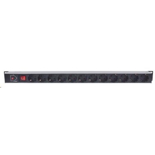 Intellinet Vertical Rackmount 12-Way Power Strip - German Type, rozvodný panel, 12x DE zásuvka, 1.6m kabel