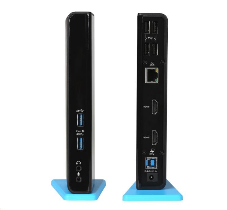 Univerzální dokovací stanice, kterou lze použít prakticky s jakýmkoliv notebookem, neboť je možné ji připojit do libovolného USB portu (USB 3.0, USB-D, Thunderbolt 3, nebo dokonce i do staršího USB 2.0).