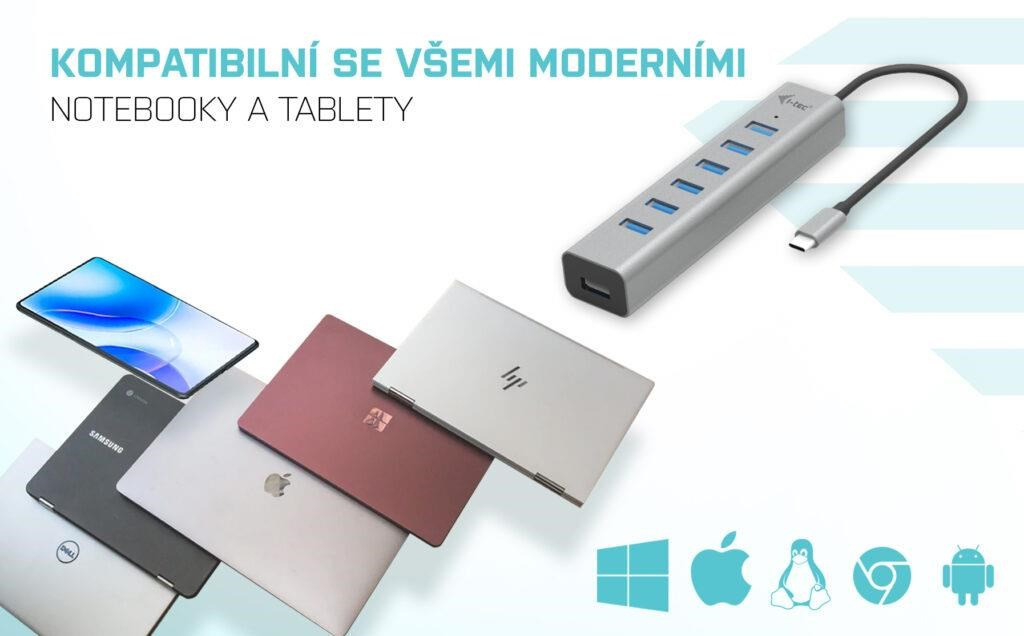 • HUB podporuje všechny běžné současné operační systémy (Windows, macOS, Linux, Android, Chrome OS, iPadOS)
