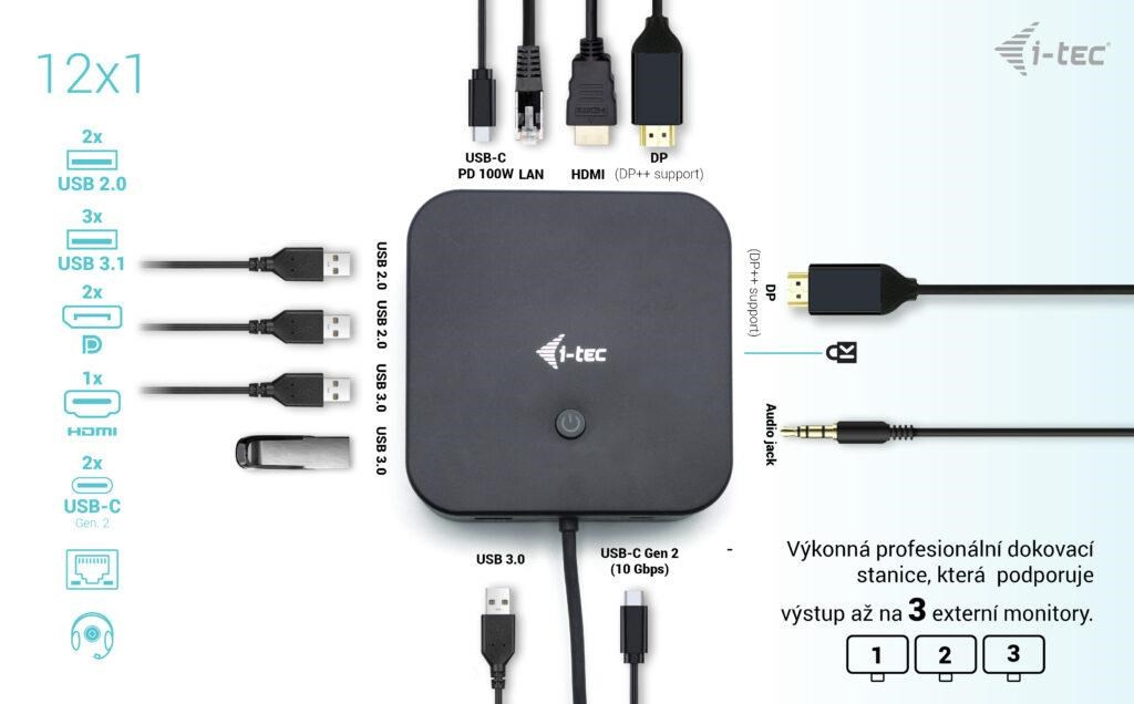 i-tec USB-C HDMI + Dual DP Docking Station + Power Delivery 100 W