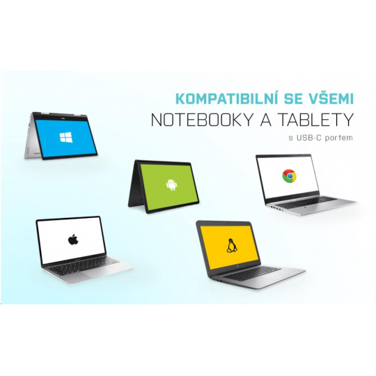 Hub nevyžaduje instalaci ovladačů, pouze jej pomocí USB-C kabelu připojíte a můžete jej ihned začít využívat. Hub má vestavěnou přepěťovou ochranu vašeho počítače pro případ zkratu na periferních zařízeních. Samozřejmostí je zpětná kompatibilita s USB 2.0. Díky kompaktním rozměrům a nízké hmotnosti jej můžete mít v brašně stále sebou – kovový povrch ostatně chrání hub před poškozením a před poškrábáním.