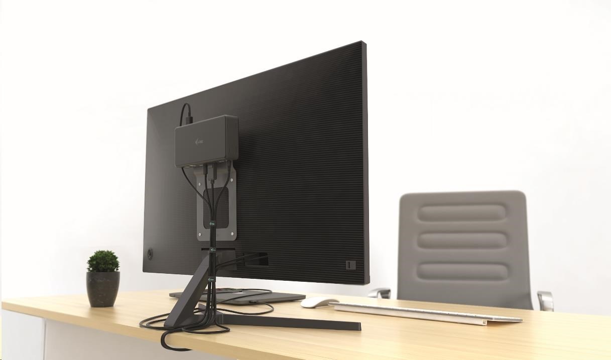 Nedílnou součástí moderní kanceláře je komfortní, čistý a efektivní design pracovní plochy. Díky chytrému využití VESA standardu nyní můžete svůj pracovní stůl zorganizovat mnohem lépe, a plochu vašeho pracovního prostředí si účinně zvětšit. Umístěním dokovací stanice (a kabelů) za monitor si zvýšíte nejen komfort, ale zároveň i minimalizujete riziko krádeže.