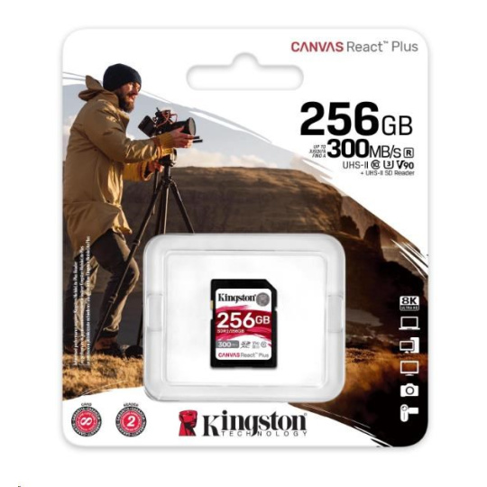 Kingston SDXC karta 256GB Canvas React Plus SDXC UHS-II 300R/260W U3 V90 for Full HD/4K/8K