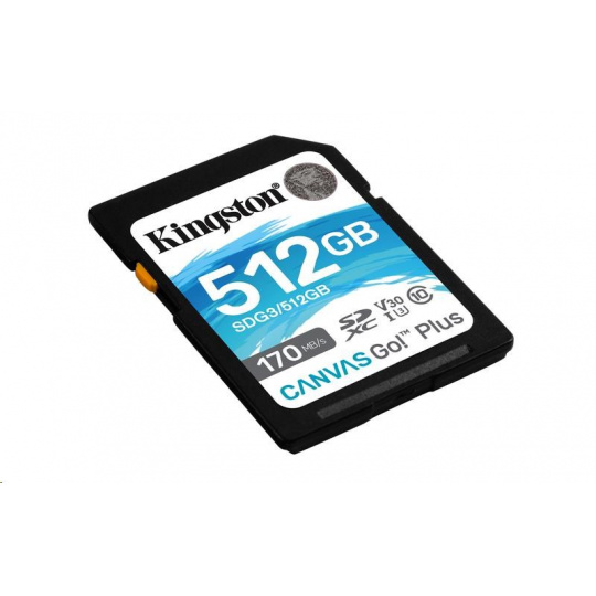 Kingston SDXC karta 512GB Canvas Go! Plus, R:170/W:90MB/s, Class 10, UHS-I, U3, V30