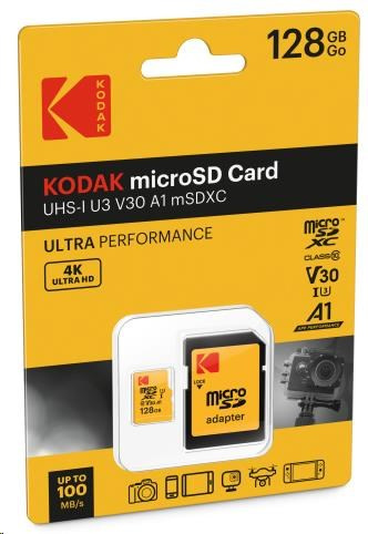 Kodak paměťová micro SD karta 128GB UHS-I U3 V30 Ultra + adaptér